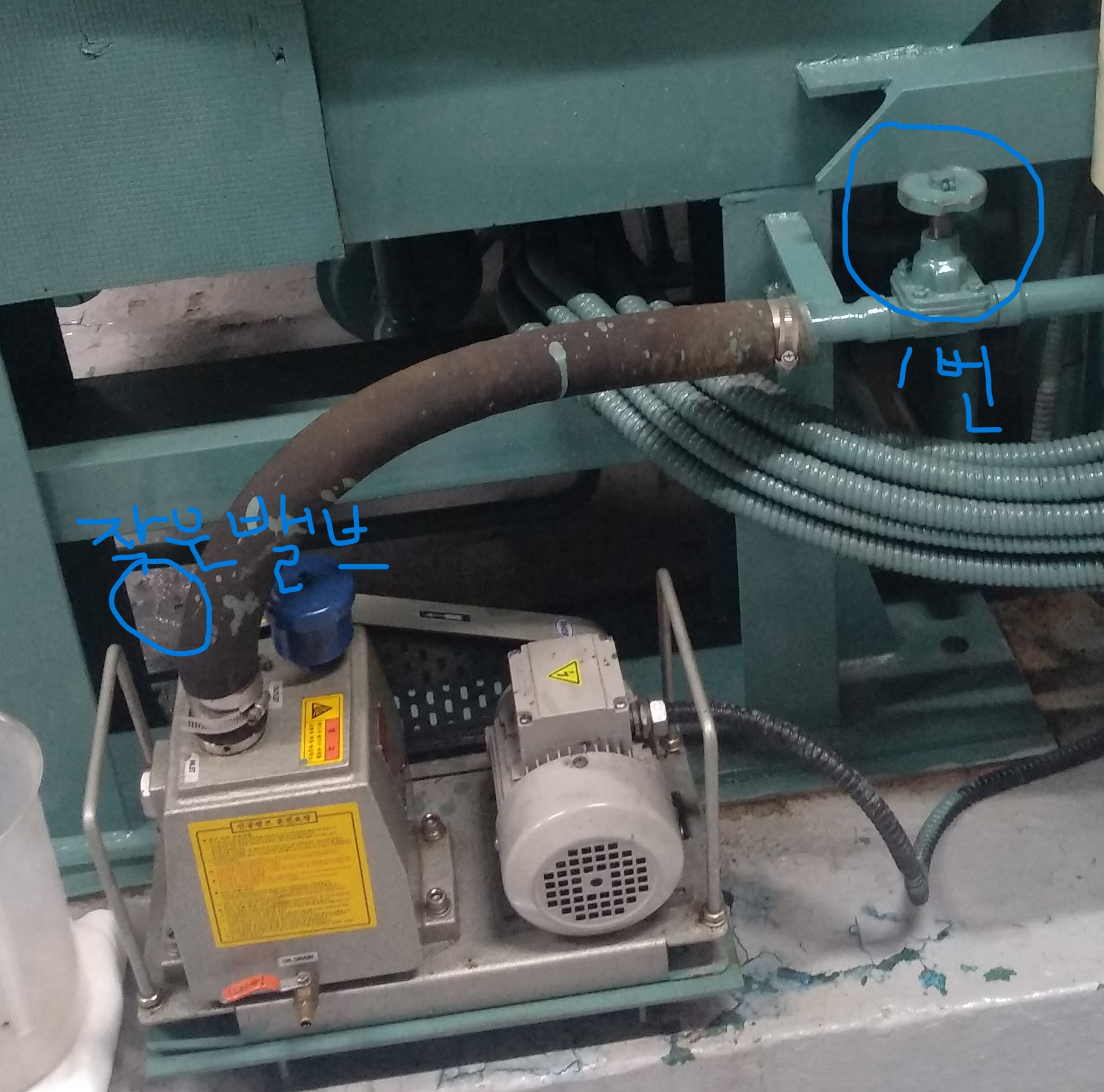 - 1번 밸브를 잠급니다.