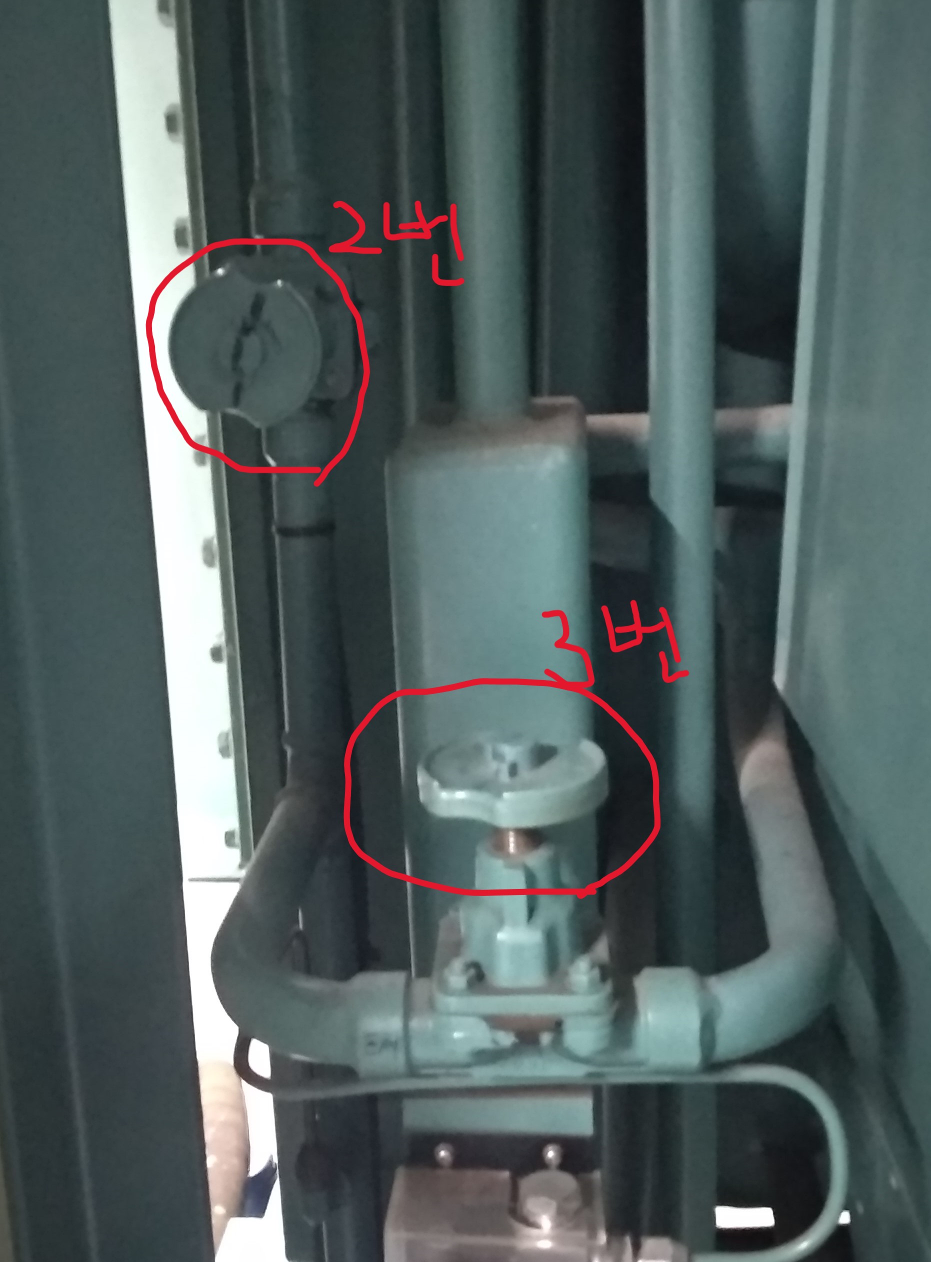 - 3번 밸브 닫고, 2번과 3번 밸브가 모두 닫혔는지 다시 확인합니다.
